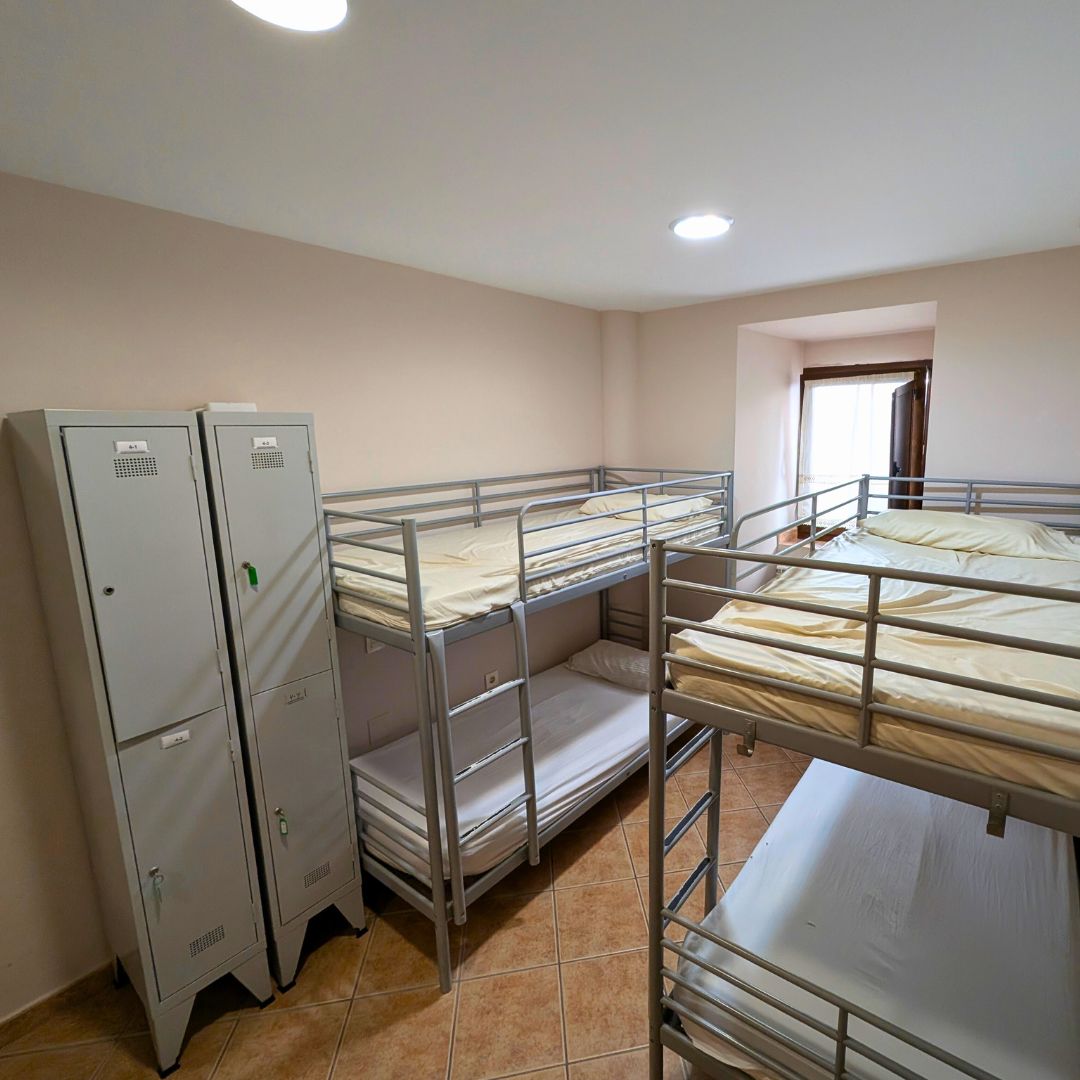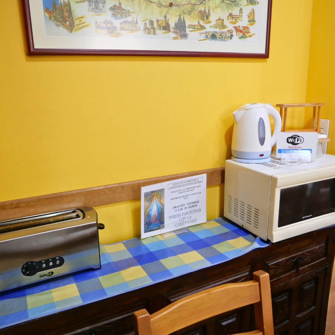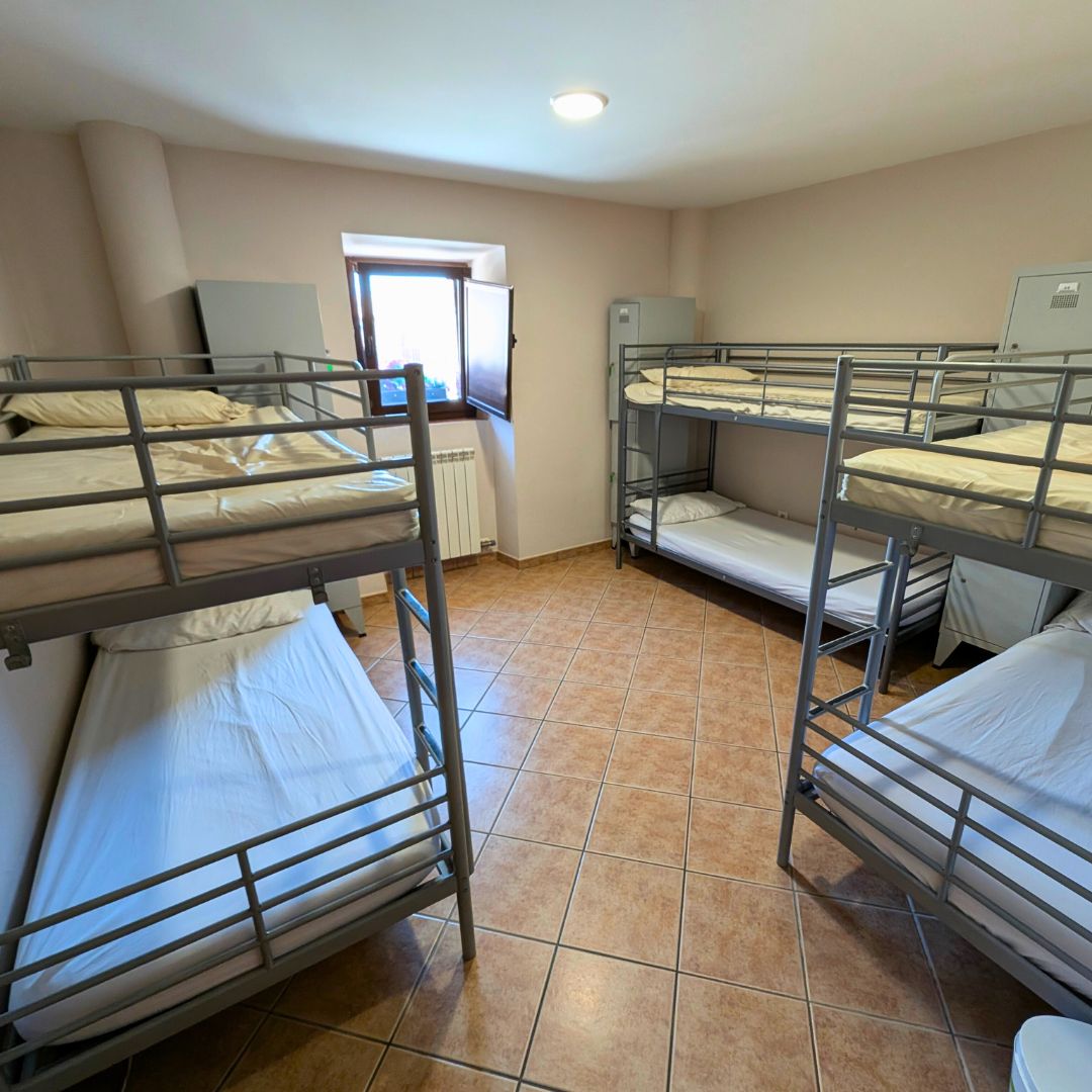 Explora nuestras acogedoras habitaciones con literas, diseñadas para el descanso del peregrino, y echa un vistazo a las taquillas individuales que protegerán tus pertenencias. Imagínate compartiendo anécdotas en nuestras zonas comunes, disfrutando de una reconfortante ducha de agua caliente —con instalaciones adaptadas para todos— o preparando la colada para la siguiente etapa.